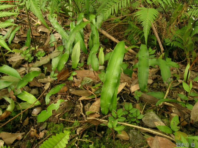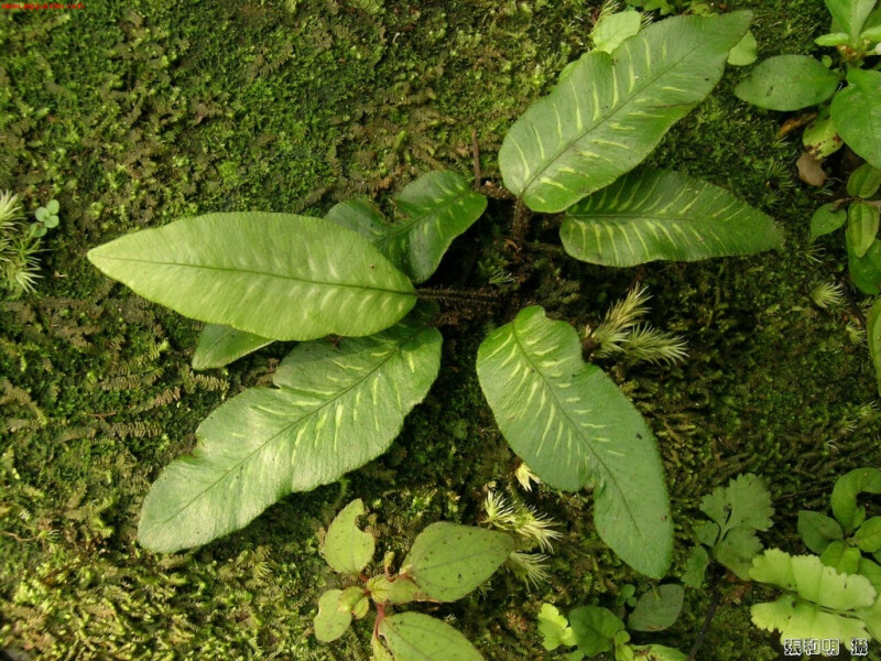 長走莖,單葉,全緣,至多基部瓣裂。10-25cm長,約2cm寬,游離脈,脈不明顯。孢膜長形。 (郭城孟 1997)