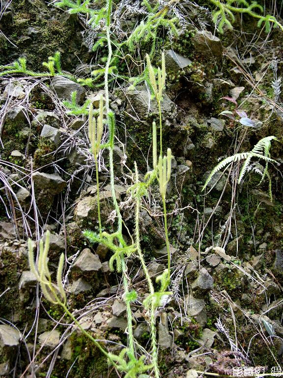 地生,匍匐性,具分支, 孢子囊穗有柄。 臺灣過去將本種及日本石松(L. japonicum)都當作L. clavatum L.。本種和日本石松最大的差異在於本種主要分佈在箭竹原中,其小葉較疏鬆,孢子囊穗較大,且有分枝。而假石松和日本石松都和林奈所指的L. clavatum L.不同。 (郭城孟 1997)