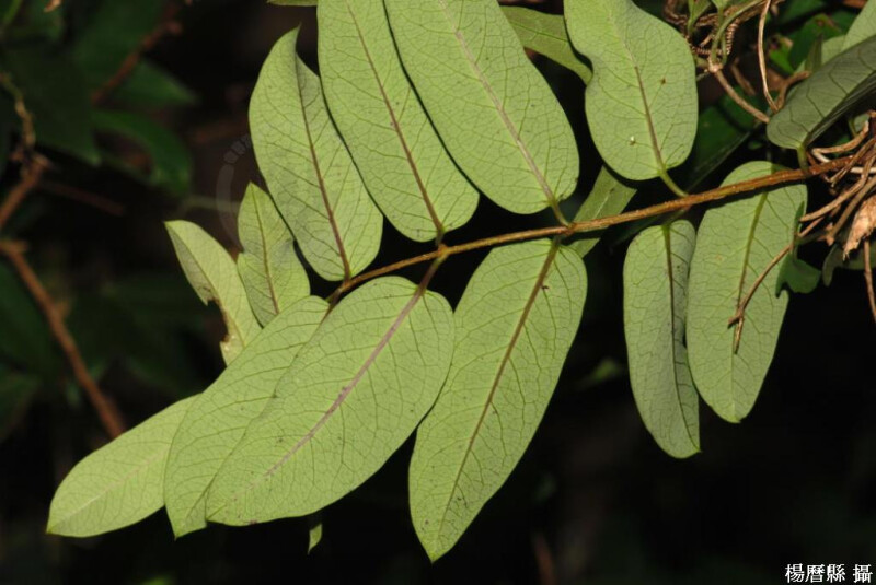 纏繞藤本;小枝常紅褐色。葉長橢圓形至披針形,長3.5-6.5 cm,先端突尖至漸尖,上表面深綠色,下表面蒼白色,側脈細,5-6對。花淡黃色。 南部及東部低海拔地區林緣或灌叢中。 (楊遠波、劉和義、施炳霖、呂勝由 1999)