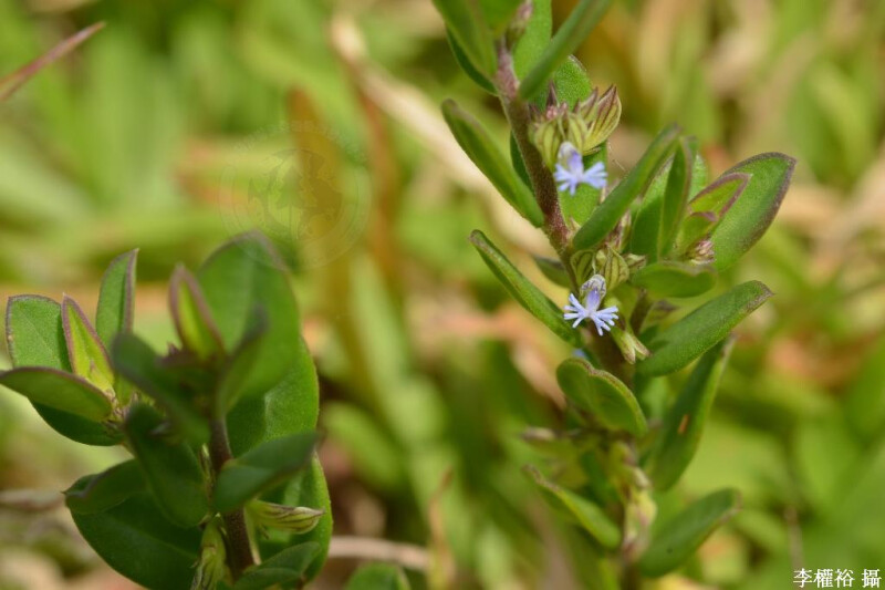 葉長橢圓形,長1.1-1.3 cm,寬2.5-5 mm;葉柄短於1.5 mm。花藍紫色。 (劉和義、楊遠波、呂勝由、施炳霖 1998)