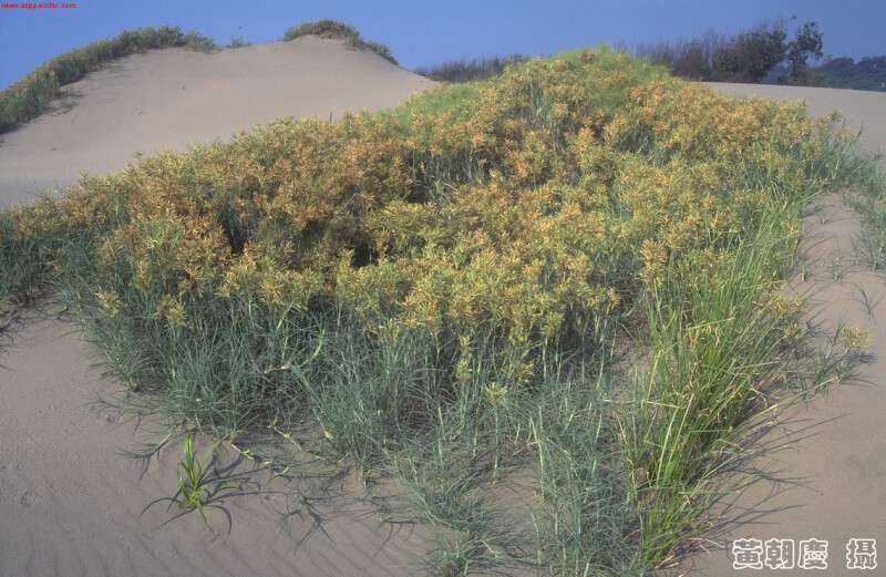 屬特徵- 多年生海濱植物;稈硬質,粗壯。葉舌為一圈叢毛。雌雄異株。雌花序頂生,星狀芒,由多數總狀花序組成,掉落時一起掉落,每一總狀花序為鞘狀物包住一基生的小穗,穗軸延長成刺。雄花序頂生,或與稈先端1至2節叢生,由多數總狀花序組成,總狀花序外伸,具多數小穗和短尖頂端;穎和小穗等長或較短。 種特徵- 葉片長5-20 cm,寬2-4 mm,彎曲,銳尖。 (楊遠波、劉和義、郭長生、陳志輝 2001)