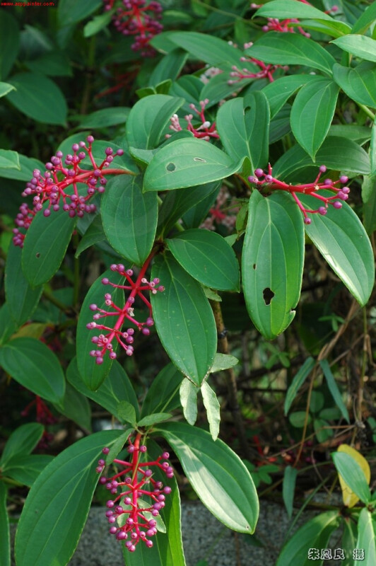 葉橢圓形,除2離基脈外,尚有2側脈。花序頂生。 (劉和義、楊遠波、呂勝由、施炳霖 1998)