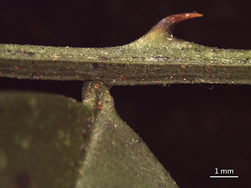 攀緣藤本;枝與葉軸具刺。小葉2-13對,近對生至互生,卵形或橢圓狀披針形,長3-9 cm;小葉柄長約3 mm。 (劉和義、楊遠波、呂勝由、施炳霖 1998)