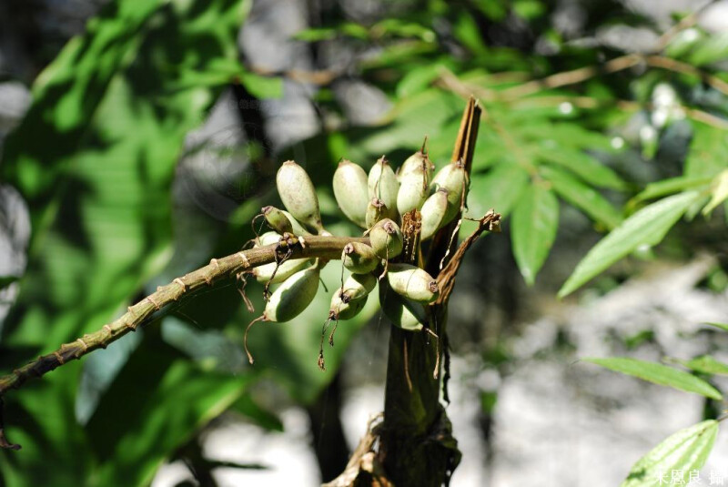 花序軸光滑無毛;苞片卵形,長15-20 cm,寬6-10 cm。果紡錘形。 (楊遠波、劉和義、林讚標 2001)