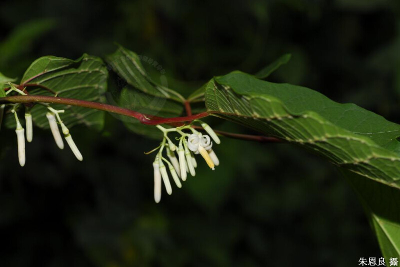 科特徵- 喬木或灌木。單葉,互生,全緣或瓣裂,無托葉。聚繖花序腋生。花兩性,輻射對稱,具苞片。花萼4-10裂。花瓣與萼片同數。雄蕊為花瓣之1-4倍,著生於膨大之花盤。子房下位,1室,稀2室。核果,常具宿存花萼。 種特徵- 幼枝有毛,變光滑。葉卵至心形,長8-20 cm,寬5-12 cm,漸尖頭,歪基,上面光滑,下面脈腋具簇毛,3-5脈;葉柄淡紅,長4-6 cm。花序3-15朵花;花長約2 cm;花瓣6-8。果卵狀,長約7 mm。 (劉和義、楊遠波、呂勝由、施炳霖 1998)