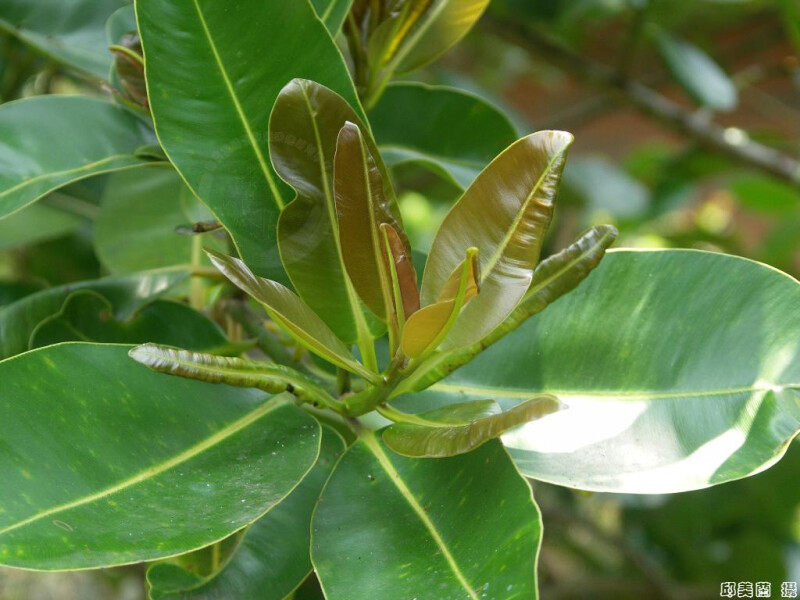 幼枝光滑。葉長橢圓至倒卵形,長 8-18 cm,寬 4.5-10 cm,先端圓或略鈍,略凹頭。總狀花序長 5-10 cm,光滑,花柄長 15-40 mm。 (楊遠波、劉和義、呂勝由 1997)